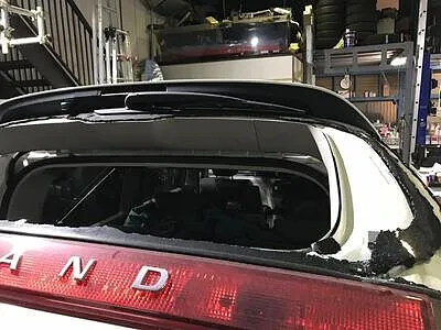 車上荒らしなどでリアガラスが壊されることも。