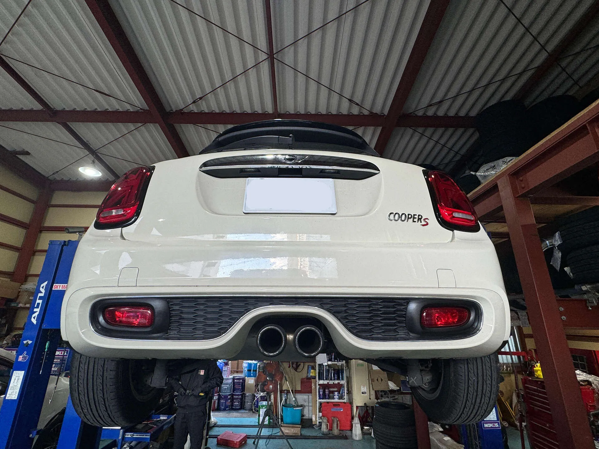 ミニクーパー 車検 ブレーキパッド交換、オイル交換